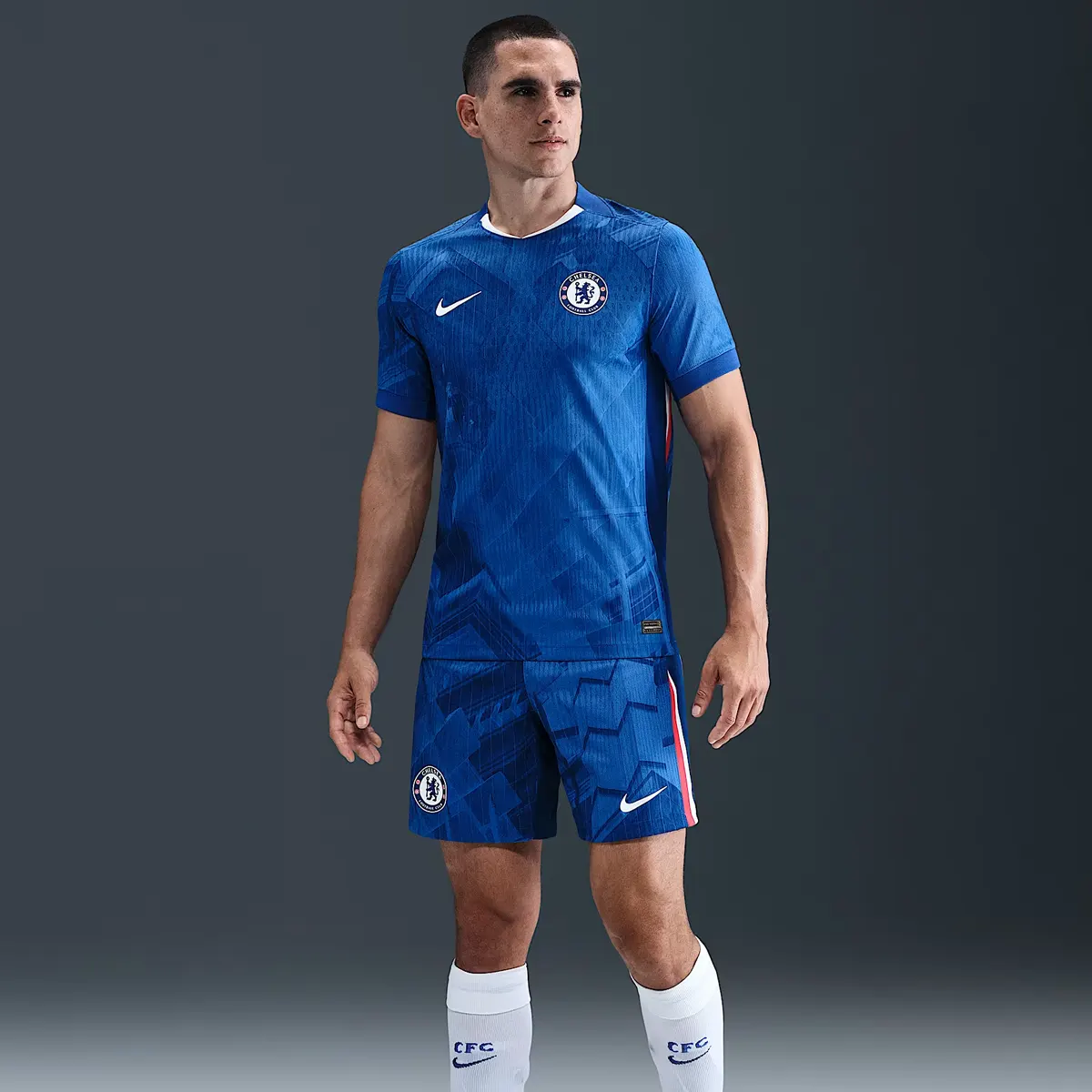 Celebra la lunga storia del club e lo spirito vivace e in continua evoluzione di Londra con la divisa Home 2025/26 del Chelsea FC. Questa maglia autentica sfoggia il classico blu Chelsea e una stampa discreta ispirata all’architettura della città.