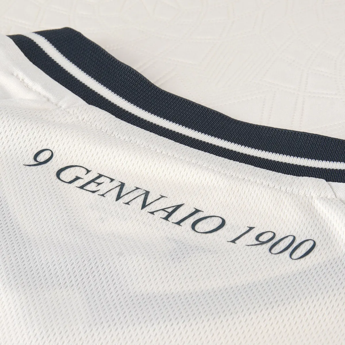 Maglia Away caratterizzata da un pannello frontale in rilievo, retro in mesh liscio e maniche raglan lisce. Colletto a V in costina con profilo a contrasto, così come i polsini. Nastro interno collo semplice. Crest del club in silicone 3D Tatami e loghi Mizuno applicati a caldo, con ulteriori loghi Mizuno sulle maniche. La scritta 9 GENNAIO 1900, applicata a caldo, è posizionata sul retro del collo. Logo Official Licensed Product applicato a caldo sull’orlo frontale, lato destro per chi la indossa.