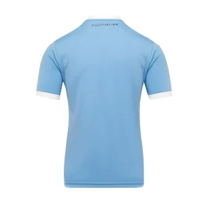 La maglia Home presenta un pannello frontale in rilievo, retro in mesh e maniche lisce a giro. Colletto girocollo e polsini a costine in tinta unita. Nastro interno collo semplice. Crest del club in silicone 3D Tatami e loghi Mizuno applicati a caldo, con ulteriori loghi Mizuno sulle maniche. La scritta 9 GENNAIO 1900 applicata a caldo è posizionata sul retro del collo. Logo Official Licensed Product applicato a caldo sull’orlo frontale, lato destro per chi la indossa.