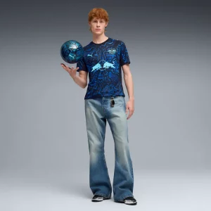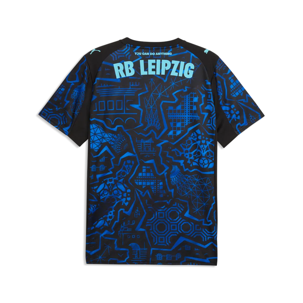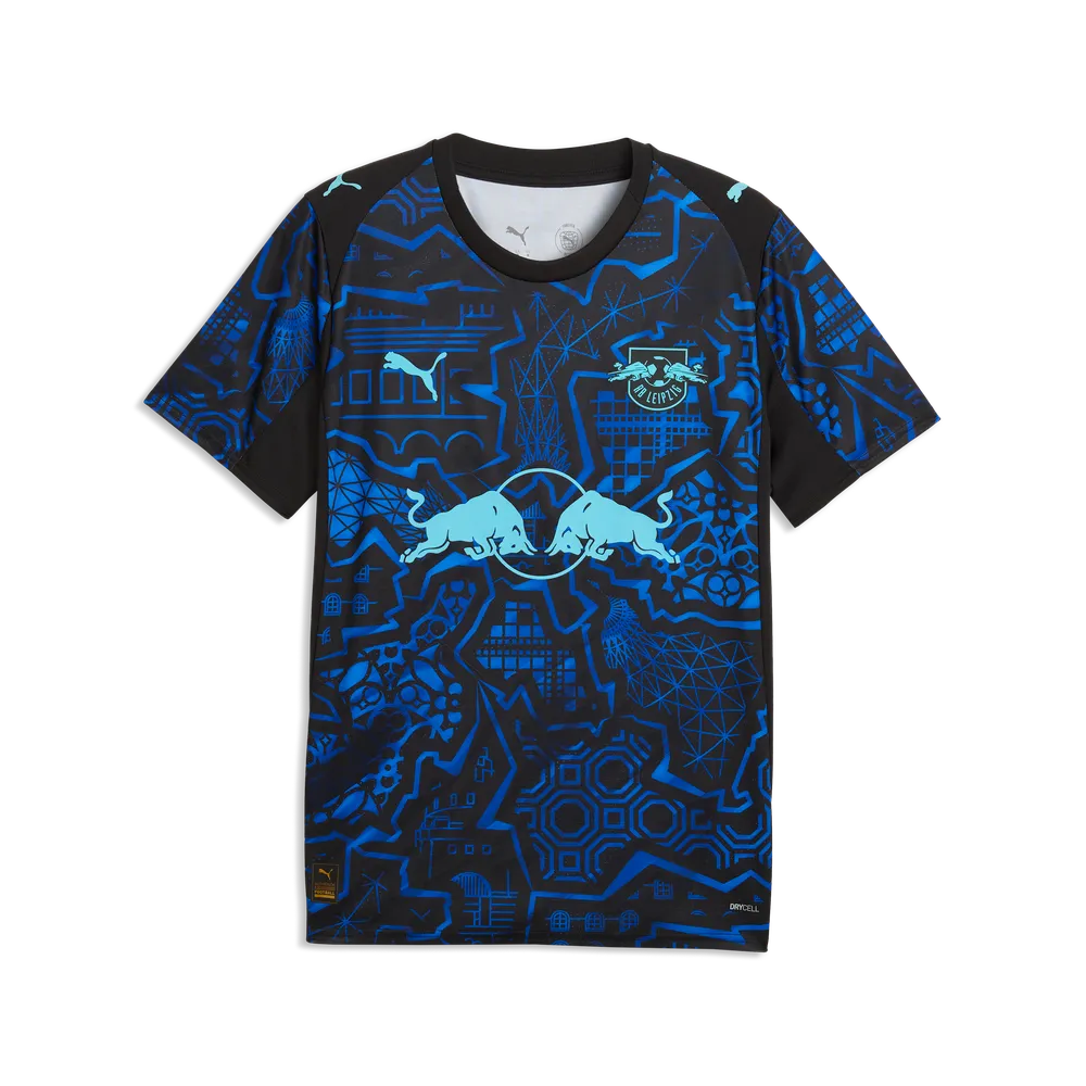 Pensata per i veri tifosi, questa maglia RB Leipzig unisce la comodità all’iconica identità del club. La grafica blu scuro e nera si ispira ai monumenti e allo skyline della città, mentre i dettagli fosforescenti sull’iconico PUMA Cat, sullo stemma del club, sullo sponsor e sulla scritta RB Leipzig catturano l’energia innovativa che caratterizza il club.